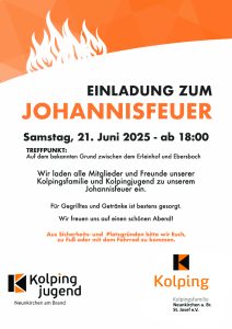 EINLADUNG ZUM JOHANNISFEUER Samstag, 21. Juni 2025 – ab 18:00 TREFFPUNKT: Auf dem bekannten Grund zwischen dem Erleinhof und Ebersbach Wir laden alle Mitglieder und Freunde unserer Kolpingsfamilie und Kolpingjugend zu unserem Johannisfeuer ein. Für Gegrilltes und Getränke ist bestens gesorgt. Wir freuen uns auf einen schönen Abend! Aus Sicherheits-…